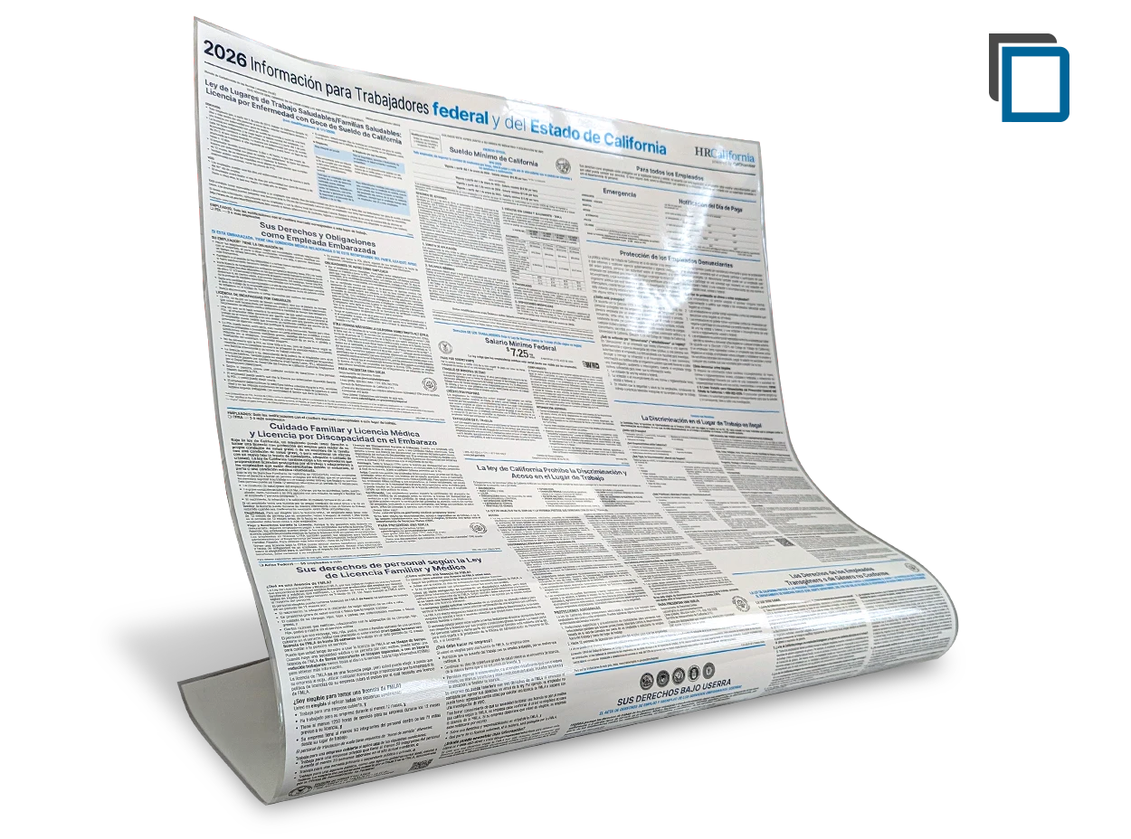 When purchasing your all-in-one 2026 Digital California and Federal Labor Law Notices, select the option that includes Poster Protect coverage for as little as $19.50. If an update is issued during the year, you'll automatically receive an email with an updated PDF of the affected notice and a poster replacement at no additional cost. (In very limited cases, we may provide you with the option to choose whether you’d like to receive a physical poster replacement.)