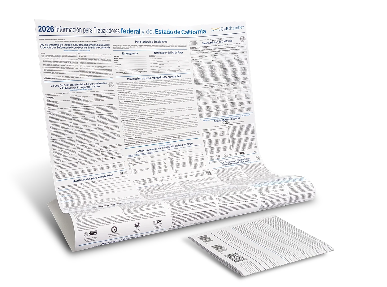 Why buy your posters from CalChamber? We monitor mandatory updates throughout the year and our direct contact with state agencies enhances our ability to provide accurate, up-to-date employment and labor law notices.